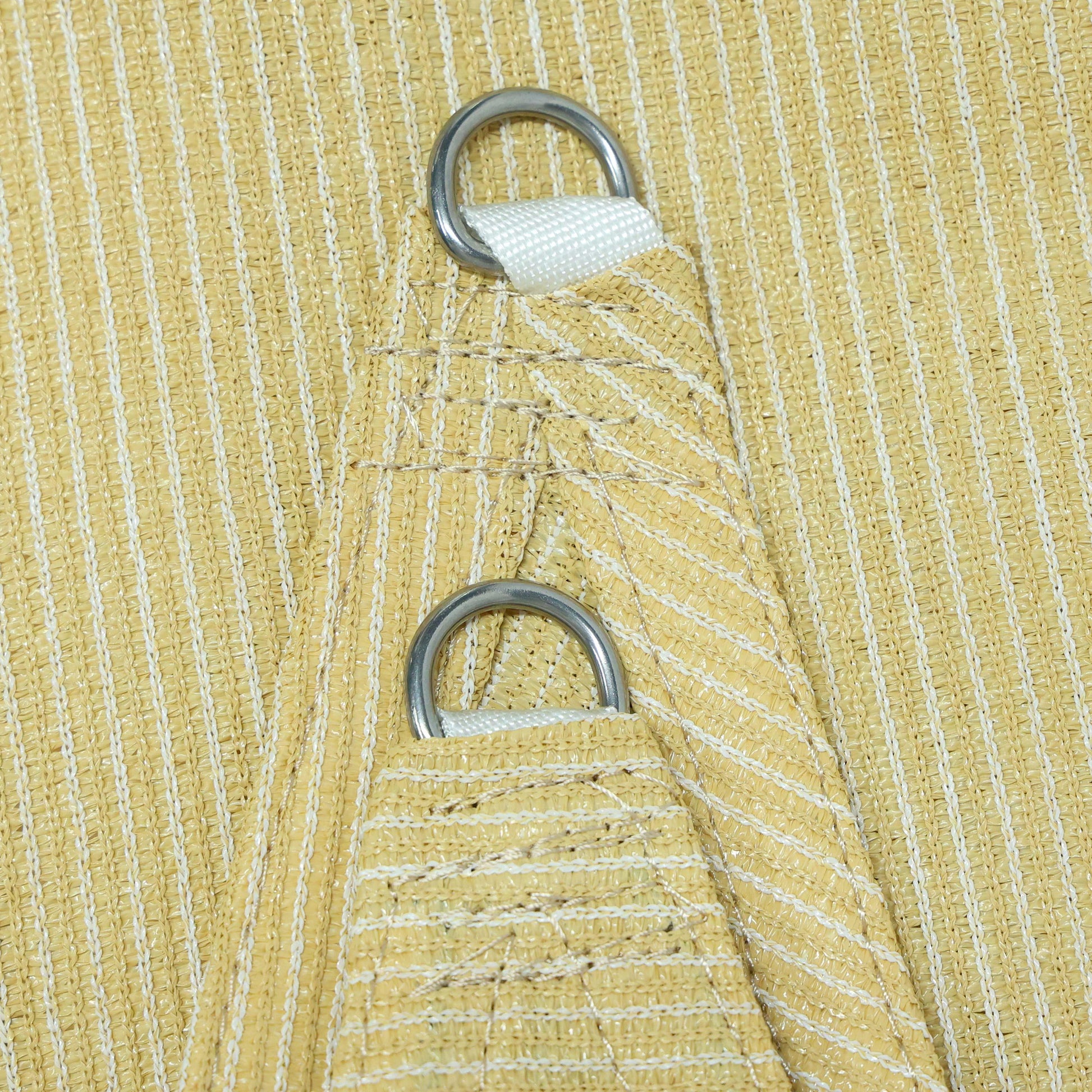 Heavy Duty: Shade sail is finished with heavy duty webbing inside the seamed edges, corners are finished with stainless steel D-rings for easy installation.