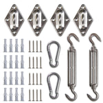 Perfect Set for Installation: Our Square/Rectangle Sun Shade Sail Hardware Installation Kit contains 40 component pcs: 2 x Turnbuckle, 2 x Snap Hook, 4 x Pad Eye, 16 x Screw, 16 x Plastic Expansion Anchor, everything you need to set up your square or rectangle sun shade sail.