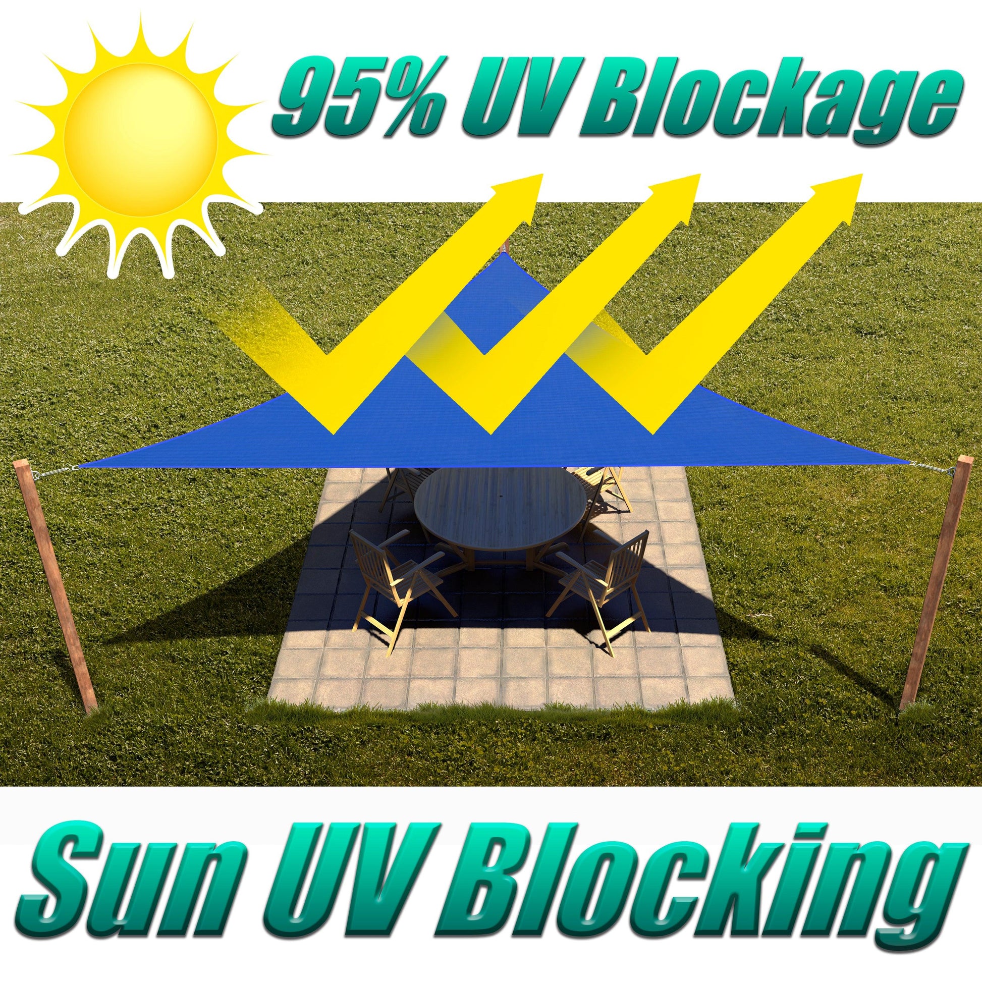 Blocks up to 95% of harmful UV, significantly reduce the temperature and UV sunlight in shaded area during summer time, ideal for patio, swimming pool, balcony, carport etc. Breathable fabric allows water and air to go through freely, no pooling water in rainy days, resistant to both UV and water, no maintenance needed.