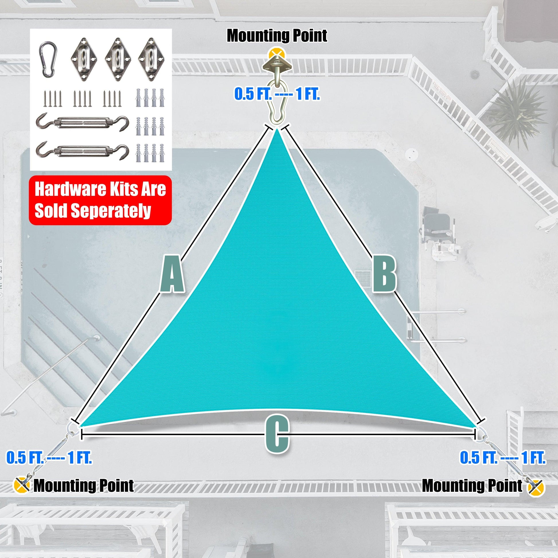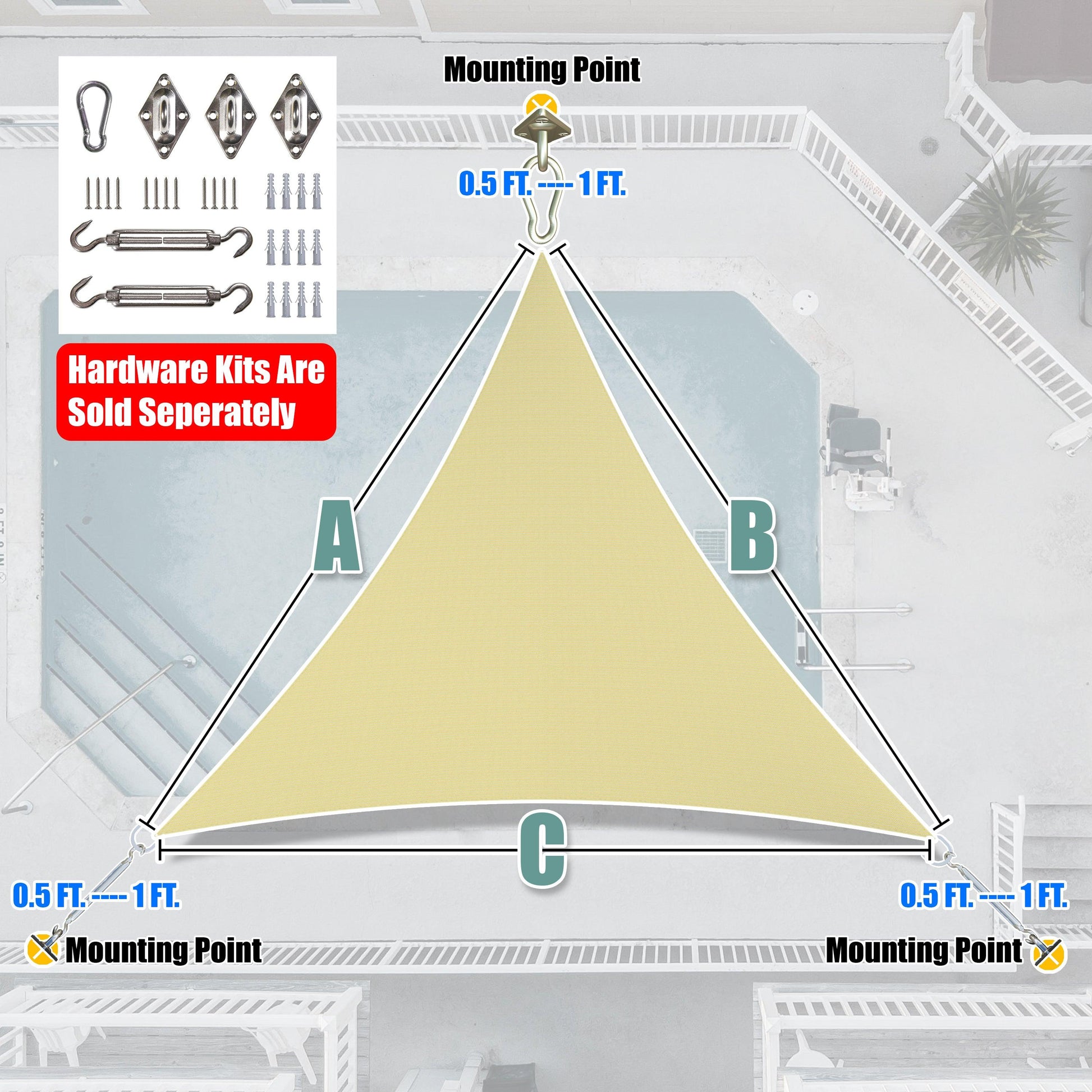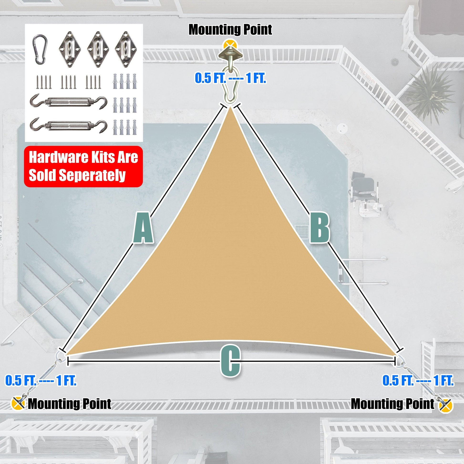 Figure Out Your Desired Shade Sail Size By Subtracting 0.5-1 FT From Your Attachment Points.