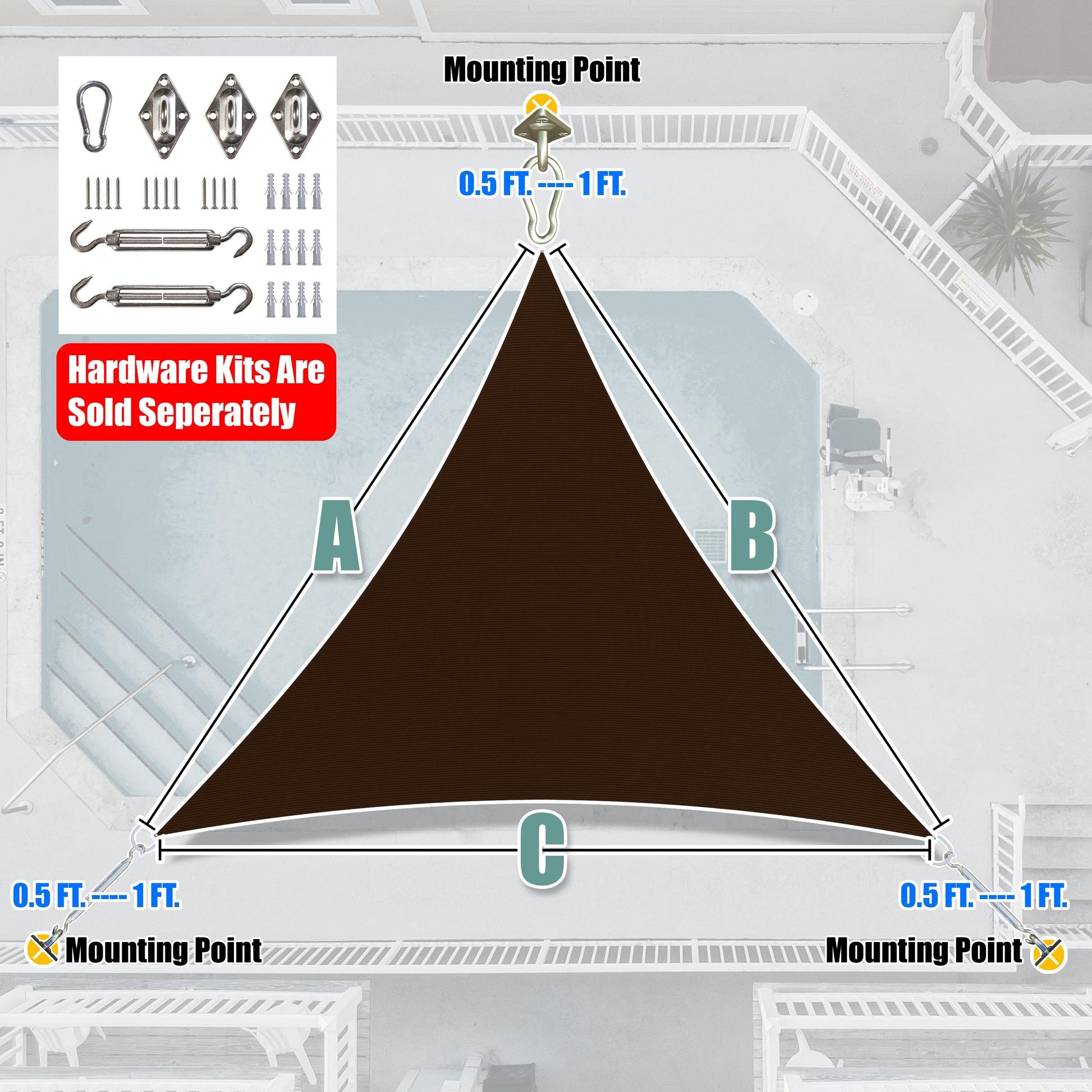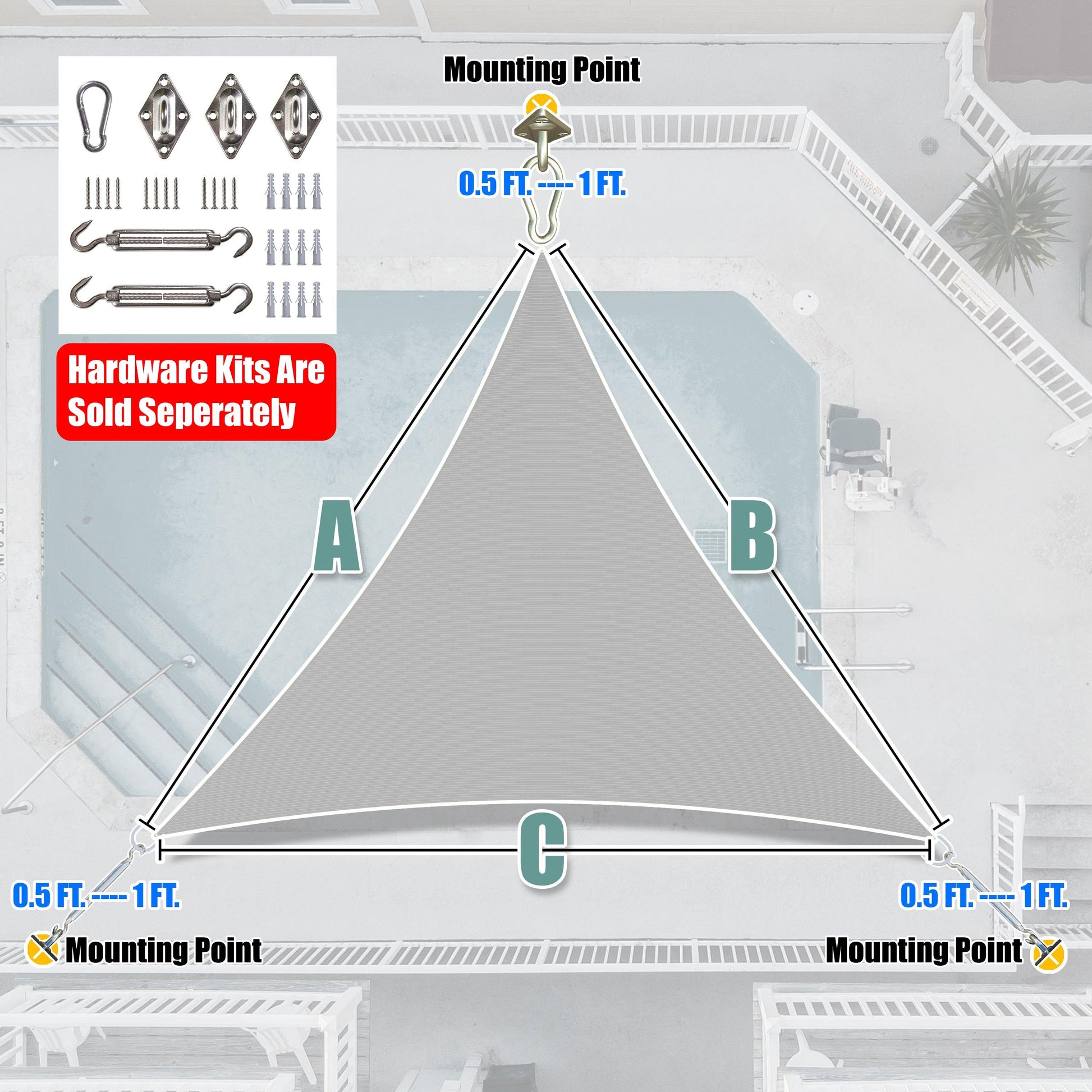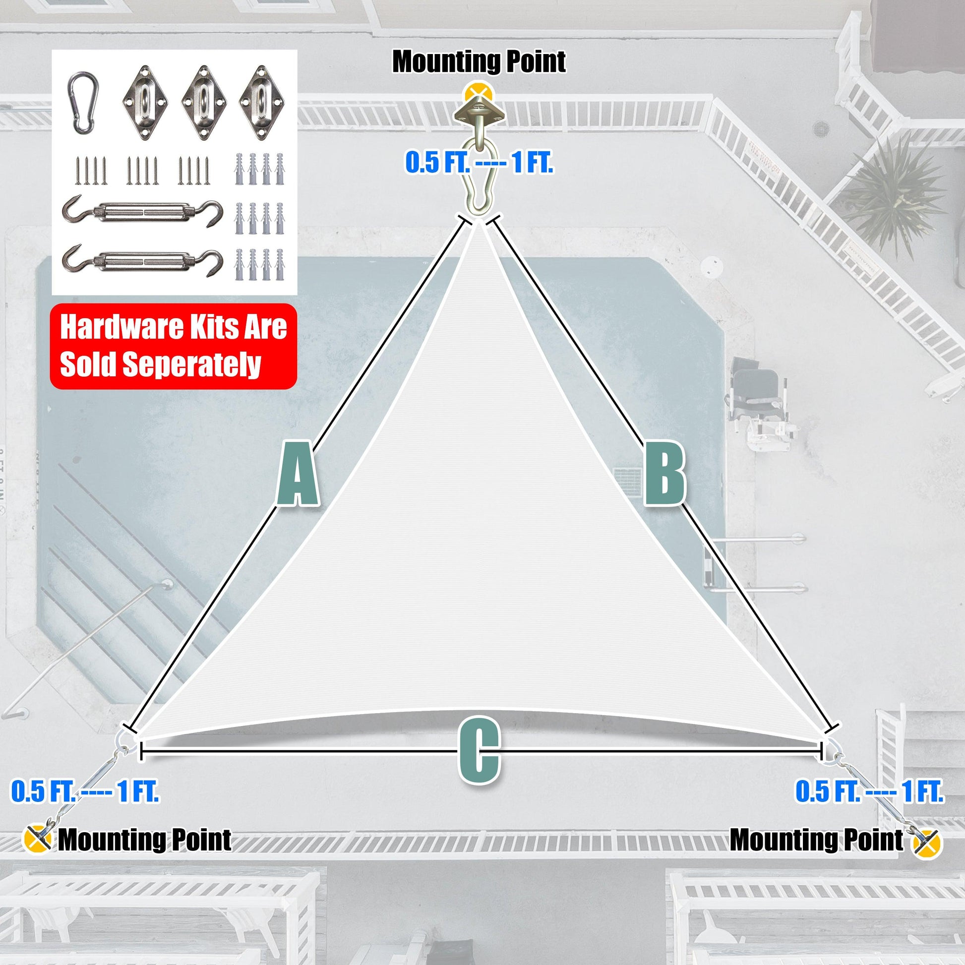 Figure Out Your Desired Shade Sail Size By Subtracting 0.5-1 FT From Your Attachment Points.