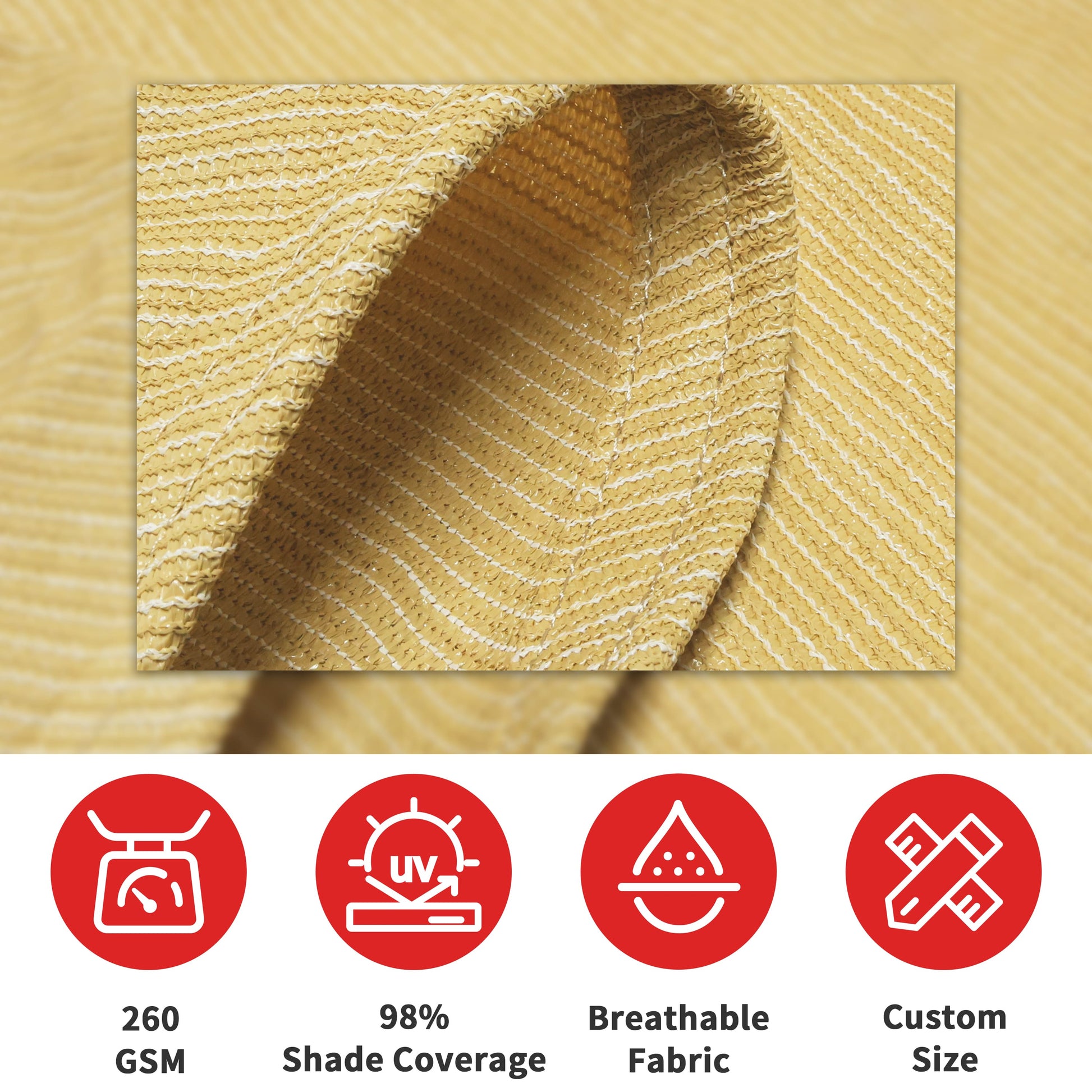 Breathable Fabric Quality: Made from 220GSM HDPE fabric, our shade sail offers excellent breathability. It permits air to circulate freely, creating a more pleasant environment beneath. Although it is not waterproof, it provides outstanding protection from the sun's harmful UV rays, keeping you and your outdoor furniture cool and shaded.