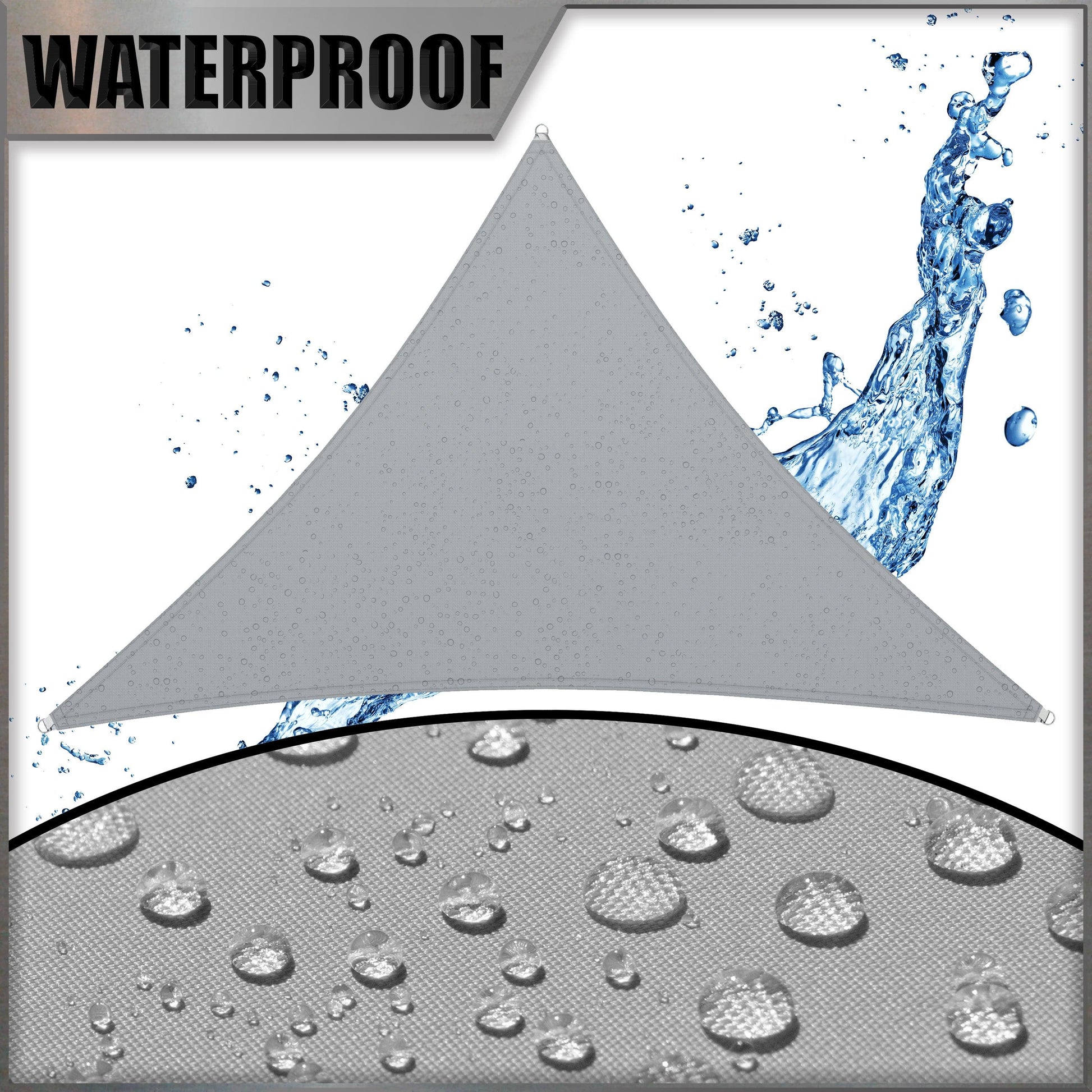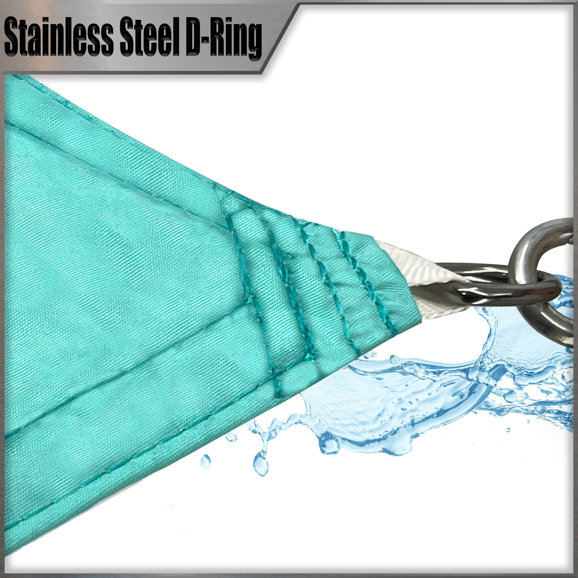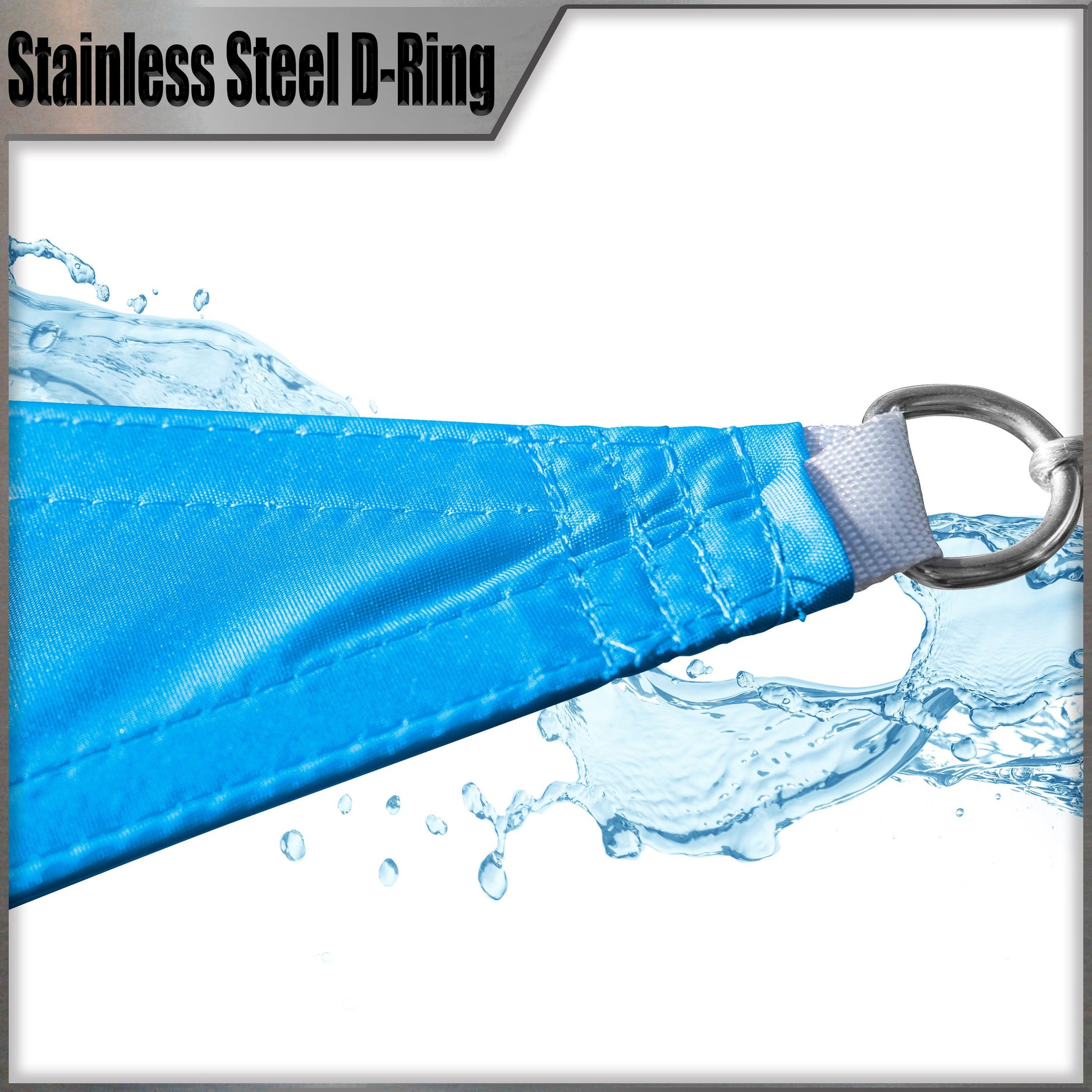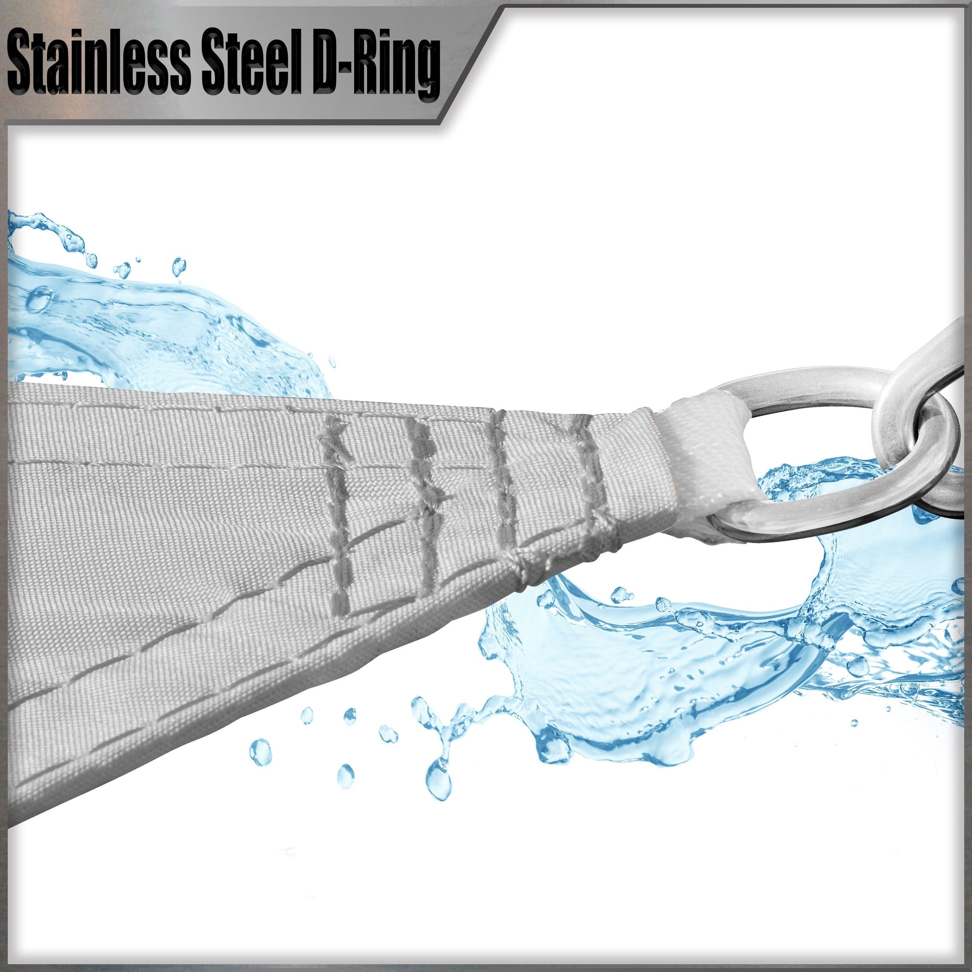 Our Waterproof Triangle Shade Sails are made of 220 GSM HDPE (high-density polyethylene) with double-layered reinforced stitched seam edges, stainless steel grade 316 d-rings on each corner, all finished with commercial standard UV stabilization