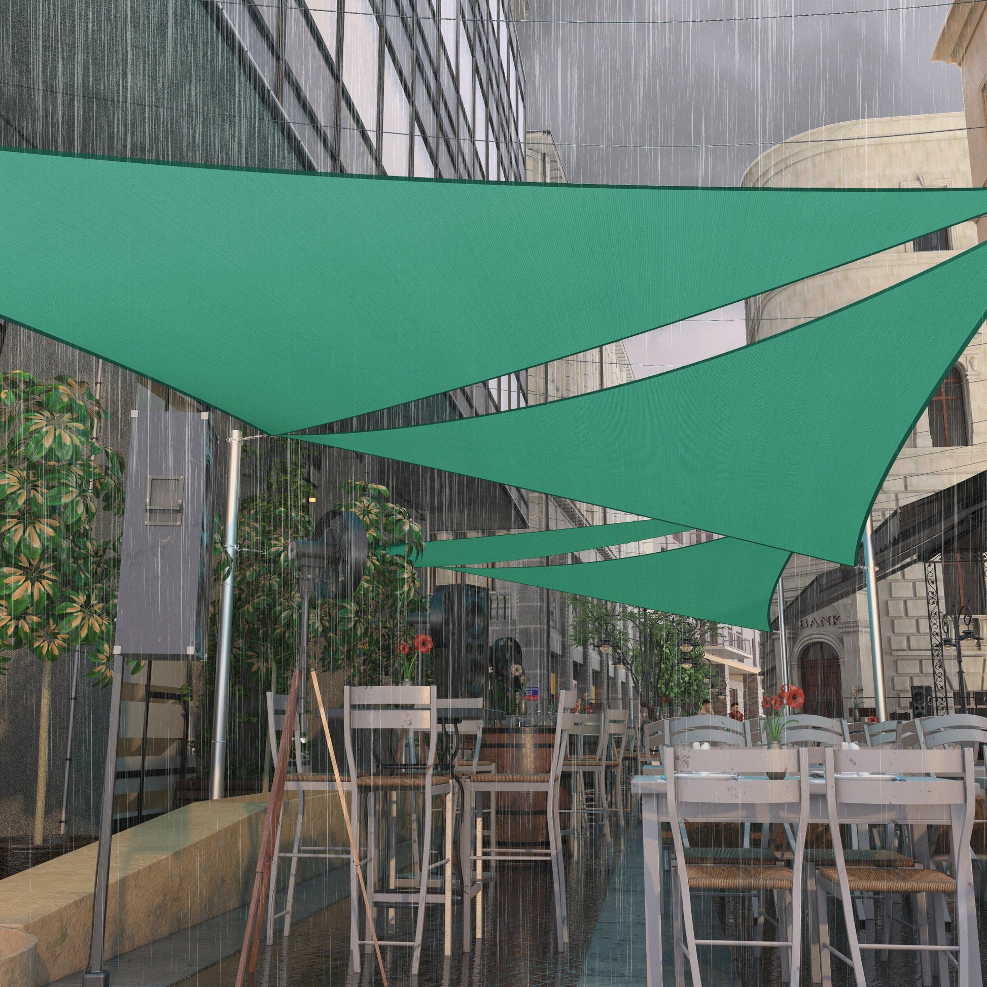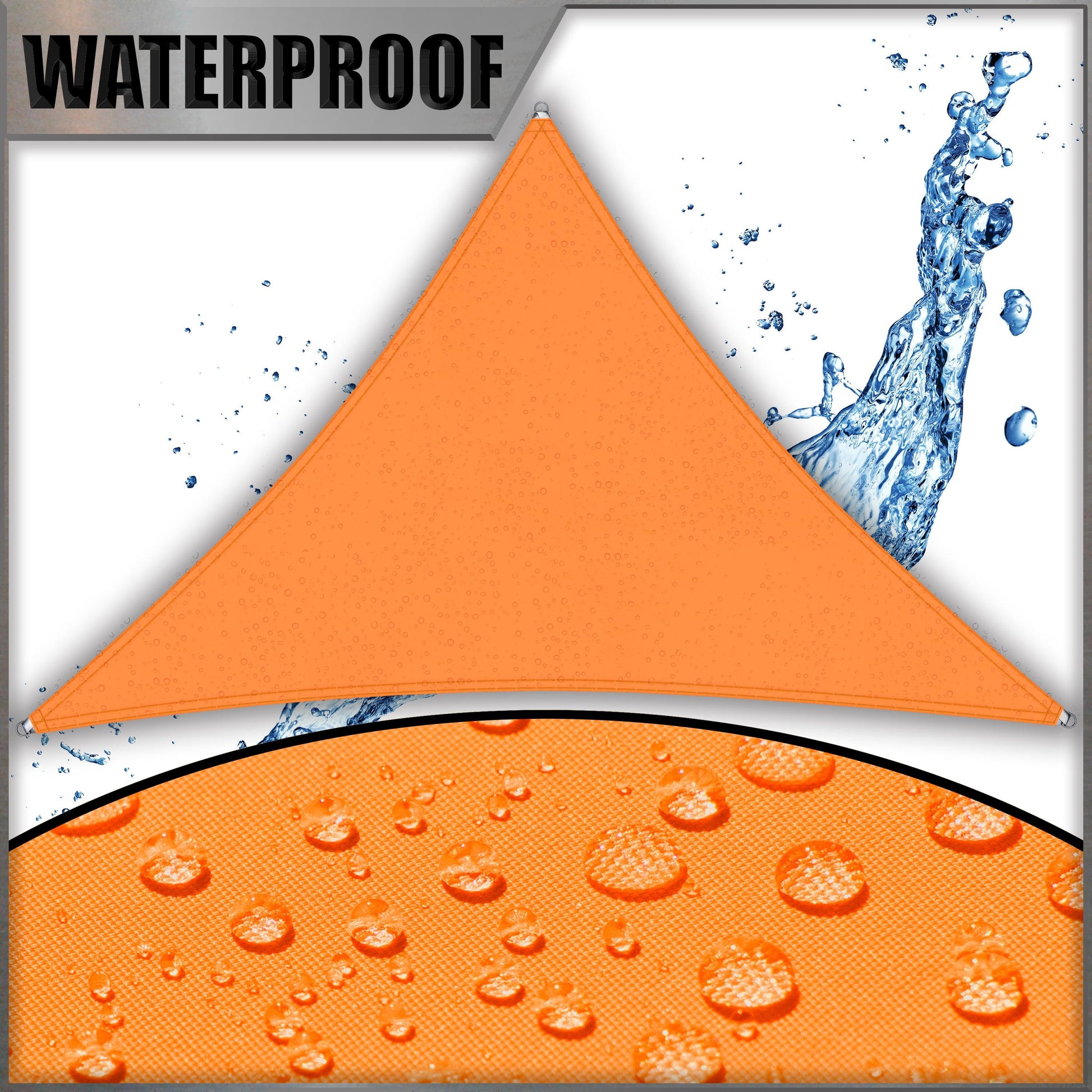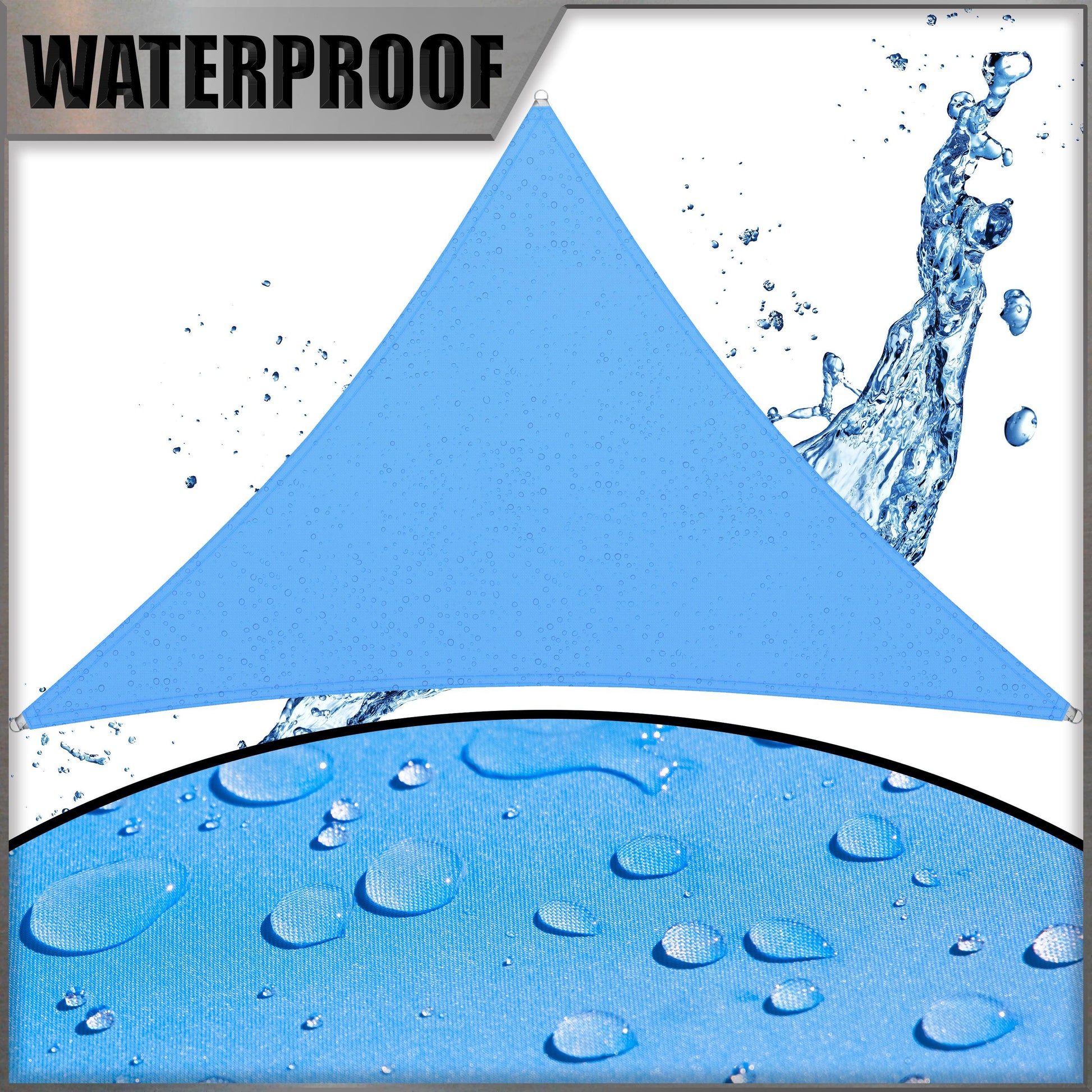 Our Waterproof Triangle Shade Sails are made of 220 GSM HDPE (high-density polyethylene) with double-layered reinforced stitched seam edges, stainless steel grade 316 d-rings on each corner, all finished with commercial standard UV stabilization
