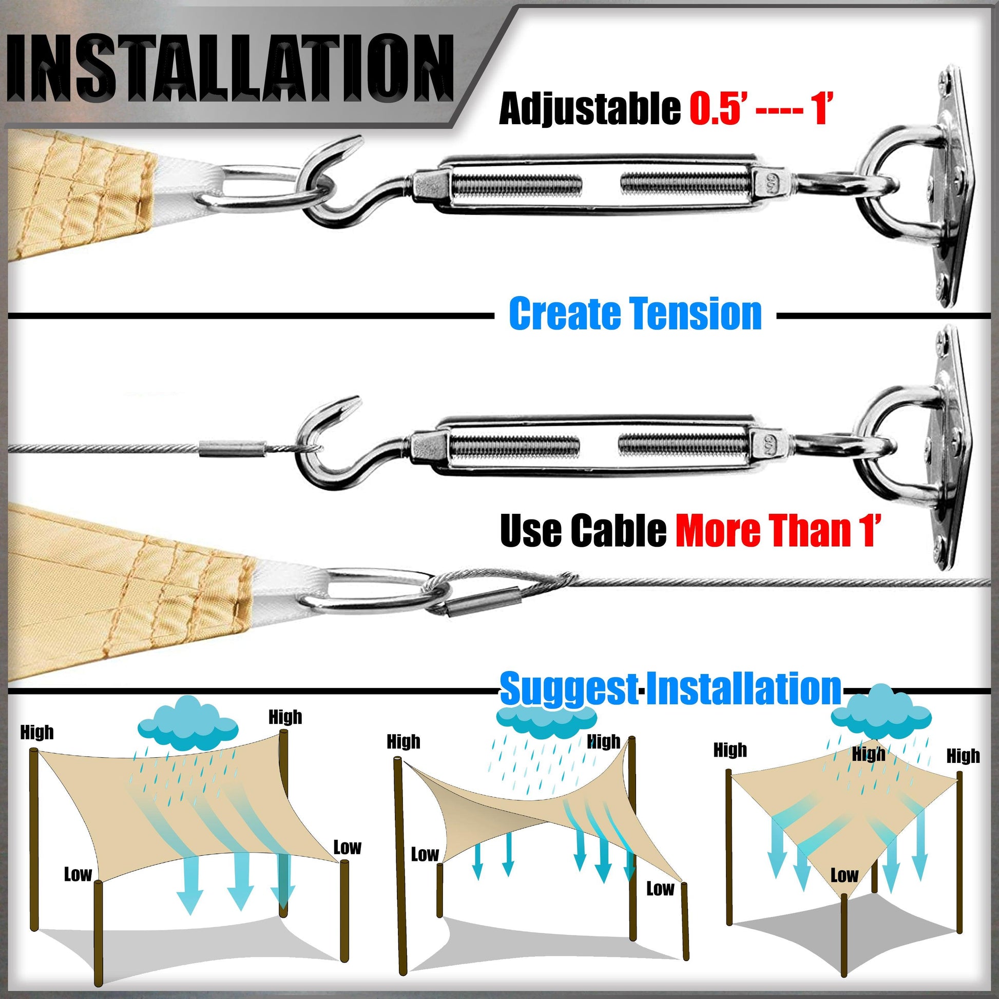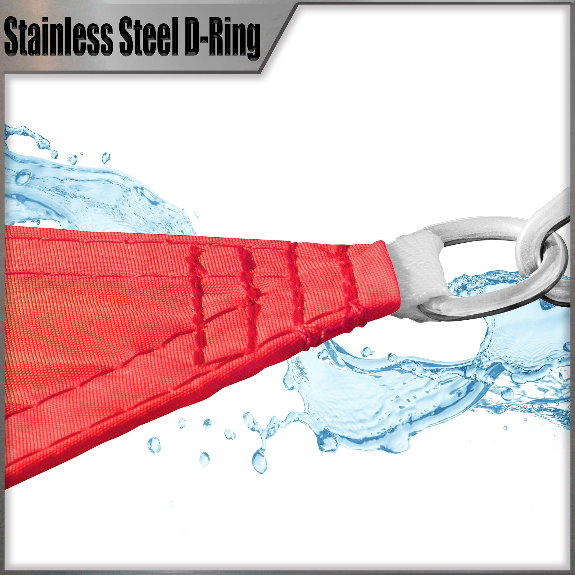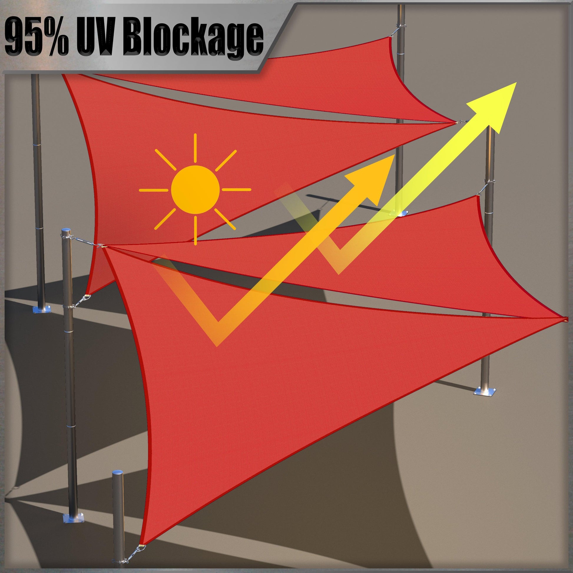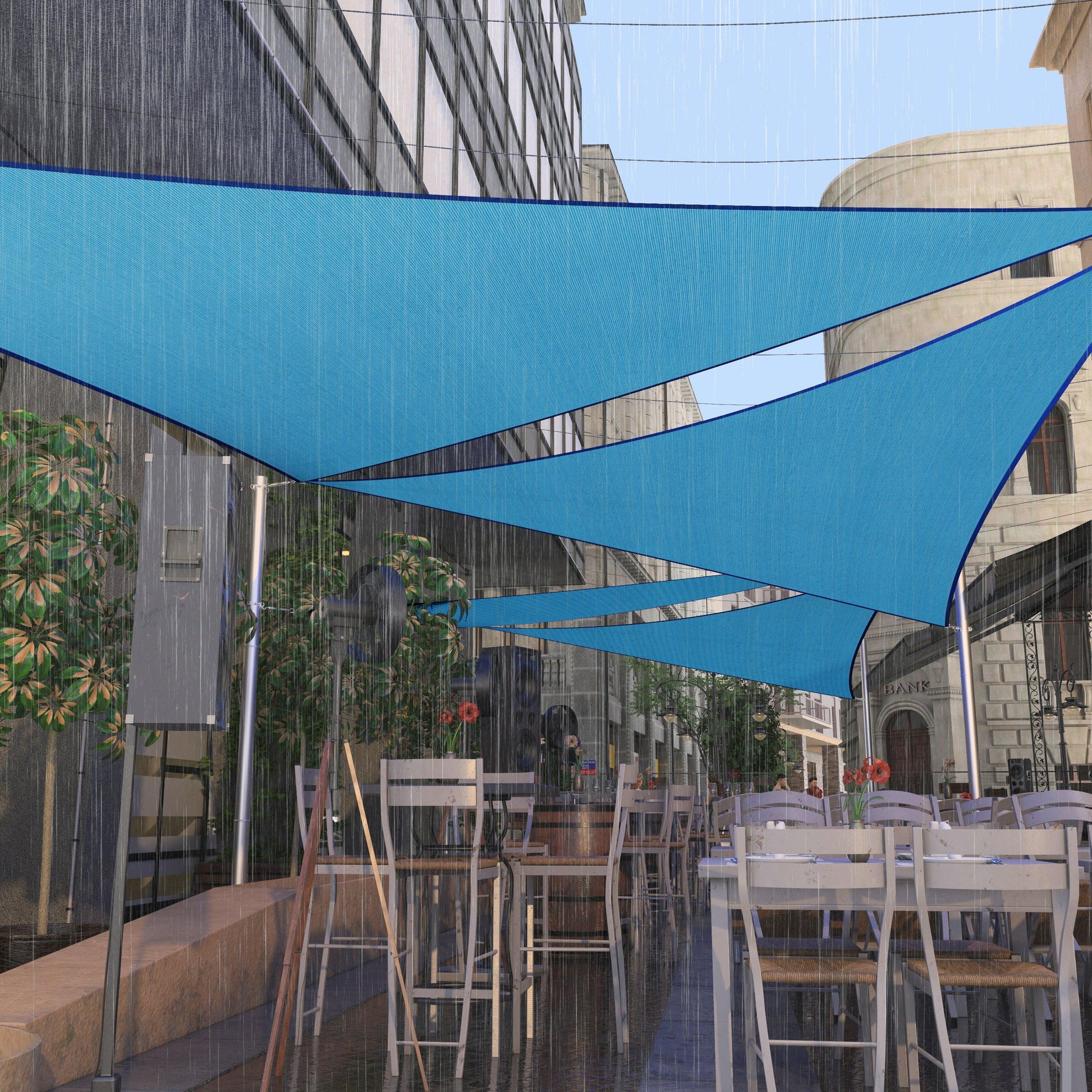 Our Waterproof Triangle Shade Sails are made of 220 GSM HDPE (high-density polyethylene) with double-layered reinforced stitched seam edges, stainless steel grade 316 d-rings on each corner, all finished with commercial standard UV stabilization